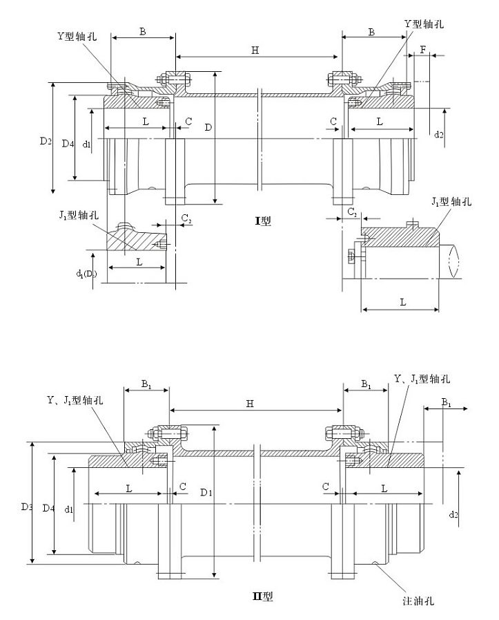 WGT型接中間套鼓形齒式聯(lián)軸器基本參數和主要尺寸:(JB/T 7004-93) mm
