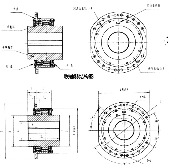 DC系列卷筒用鼓形齒式聯(lián)軸器主要參數(shù)及尺寸: mm