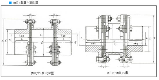 JMⅡJ型膜片聯(lián)軸器基本參數(shù)和主要尺寸: (JB/T 9147-99) mm