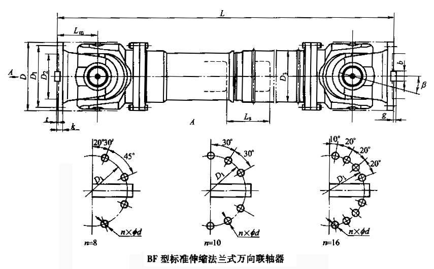 BF型十字軸式萬向聯(lián)軸器基本參數(shù)和主要尺寸 (JB/T 5513-91) mm |